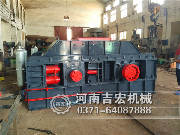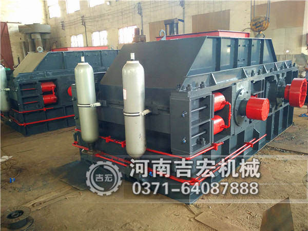 石灰石破碎機主要由輥輪、輥輪支撐軸承、壓緊和調節裝置以及驅動裝置等部分組成。工作時,將破碎物料經給料口落入兩輥子之間,進行擠壓破碎,成品物料自然落下。遇有過硬或不可破碎物時,其輥子可憑液壓缸或彈簧的作用自動退讓,使輥子間隙增大,過硬或不可破碎物落下,從而保護機器不受損壞。相向轉動的兩輥子有一定的間隙,改變間隙,即可控制產品排料粒度。