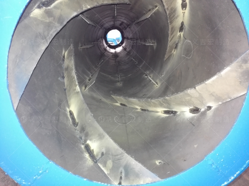 干燥機加熱環境空氣,并將其輸送到滾筒的外圍,從而排出產生的濕熱空氣,留下干燥空氣繼續干燥過程。在干燥機底部溫度達到400-800的情況下,進料提升機在智能液位計的指令下,將物料提升到干燥機的預熱區,然后通過電流斷續器送入多個重疊的組合換熱器,物料不斷均勻下滑,逐漸進入干燥區和干燥區。烘干機中的熱量通過傳導、對流和輻射傳遞給物料。
