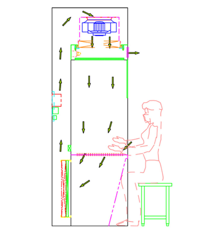 2,均流膜送風,保證均流膜下方氣流流型效果,層流效果更加明顯。